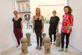 Vernissage am 28.6.2016 in der Gotischen Halle (von links): die Künstlerinnen Lingitz, Legat und Kickenweitz mit Mentorin Tanja Gurke